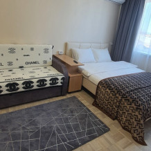 Двухспальная кровать, раскладной диван, телевизор, Wi-Fi, полностью оборудованная кухня: плита, чайник, холодильник, вся необходимая посуда и принадлежности. Стиральная машина, утюг. Чистое постельное бельё.