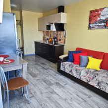 Современная квартира «Опера» расположена в жилом комплексе премиум-класса «Театральный», вблизи центра города у Шикарного моста через бухту «Золотой рог», рядом с Мариинским театром. С квартиры открывается шикарный вид на заливы и город.