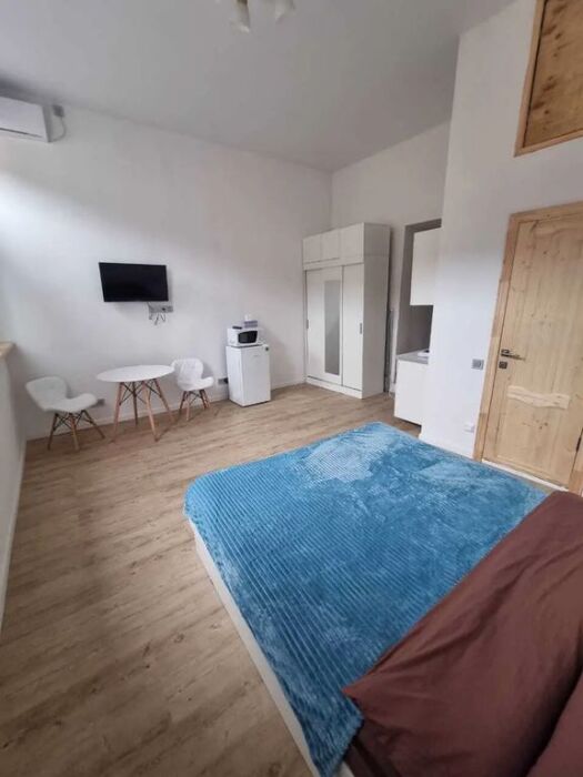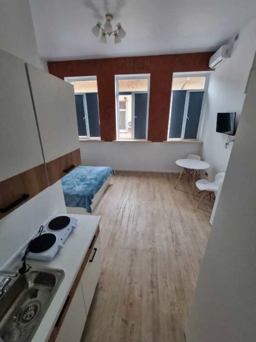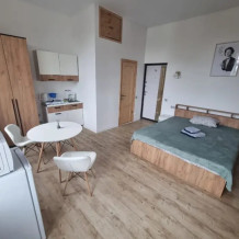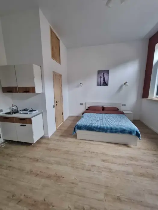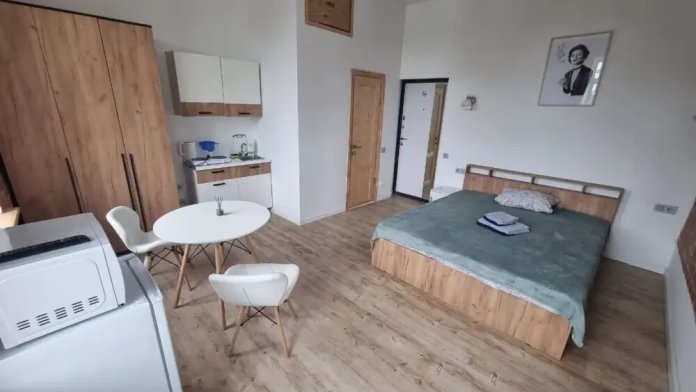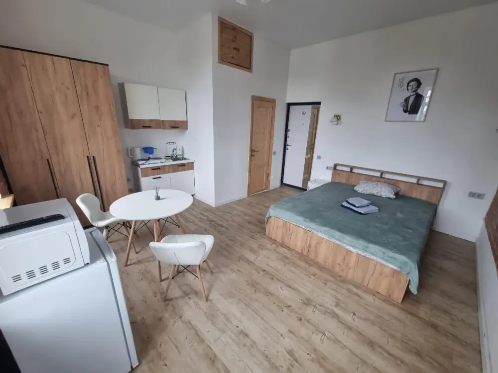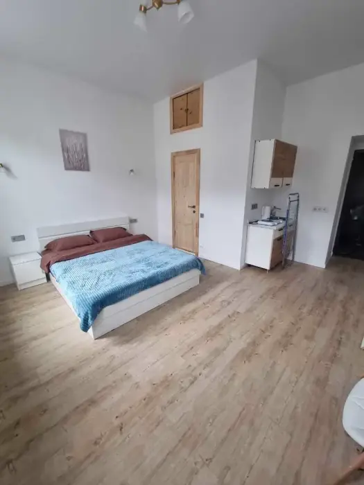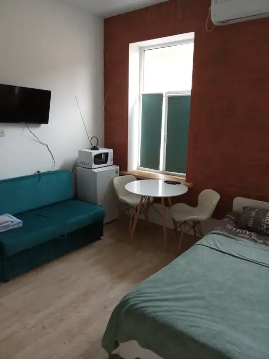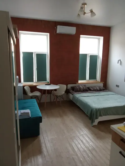 Сейчас 5 новых студий ждут своих гостей. В студии есть все необходимое для комфортного проживания: душ, кондиционер, телевизор кухонная зона, большая двуспальная кровать, 1,5 спальный диван, посуда для приготовления и сервировки стола.