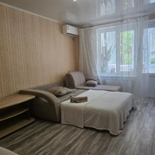 В квартире есть все необходимое. Угловой двуспальный диван (ортопедическое основание), плюс диван аккордеон 140×200 (ортопедические основание), на кухне угловой диван раскладывается на одно спальное место. Wi-fi, смарт ТВ, холодильник, духовка, микроволновка, стиральная машина, утюг, фен, сплит система, дополнительно имеется бак с водой. Лоджия. В квартире светло и чисто. Дом кирпичный.
