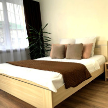 В квартире есть всё необходимое для комфортного проживания: удобная двуспальная кровать в одной комнате, раздвижной диван — в другой, а по предварительной договорённости — дополнительная кровать. Оснащена кондиционером, горячая вода всегда в наличии.