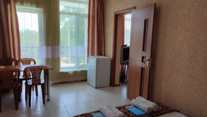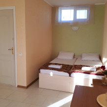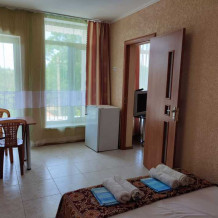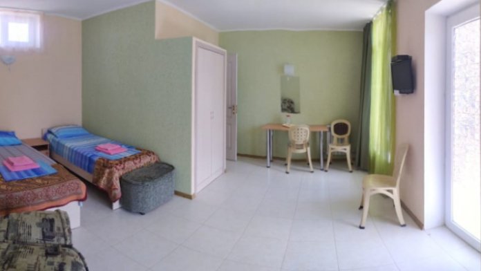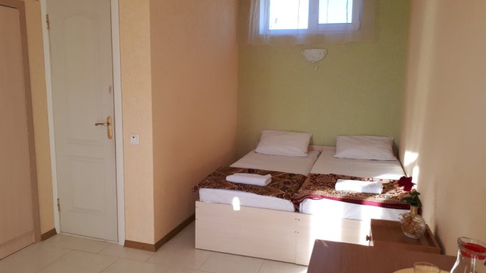 К Вашим услугам комфортабельные номера Стандарт и Семейный. Новые интерьеры, мебель и техника, гостевой дом открыт в 2015 году. Все номера оборудованы холодильником, санузлом с душевой кабиной и умывальником, холодная и горячая вода постоянно; спутниковое TV, бесплатный WI-FI, кондиционер, балкон с пластиковой мебелью и сушилками для белья. Отделка номеров выдержана в едином стиле. Бесплатно по запросу предоставляется детская кроватка, детский стульчик в кафе, чайник в номер и фен, сейф находится у администратора.