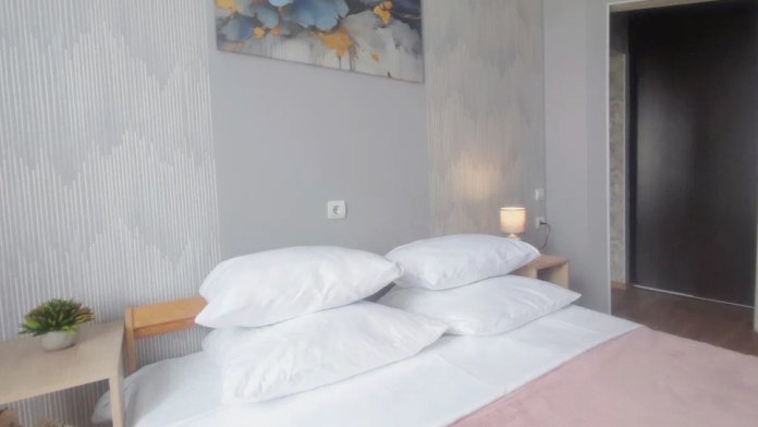 - Спальные места: 2-спальная кровать со свежим бельём и ортопедический диван (140x200 см).