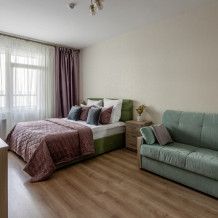 В квартире есть все необходимое для комфортного время провождения: двуспальная кровать с ортопедическим матрасом, комфортный двухместных диван, дополнительная раскладная кровать, 2 телевизора со Smart TV, беспроводной интернет Wi-fi, холодильник, кухонная плита, электрический чайник, фильтр для воды, микроволновая печь, капсульная кофе машина, духовой шкаф, вытяжка, фен, стиральная машина, утюг, гладильная доска, сушилка для белья, детская кроватка, детский стульчик.