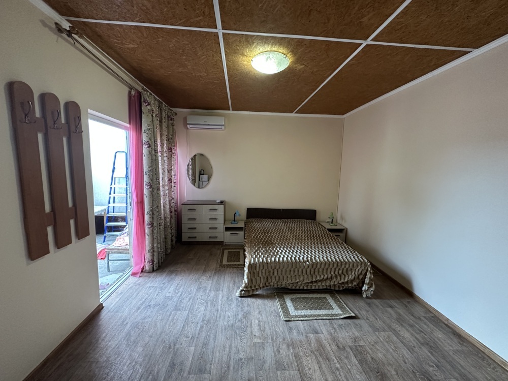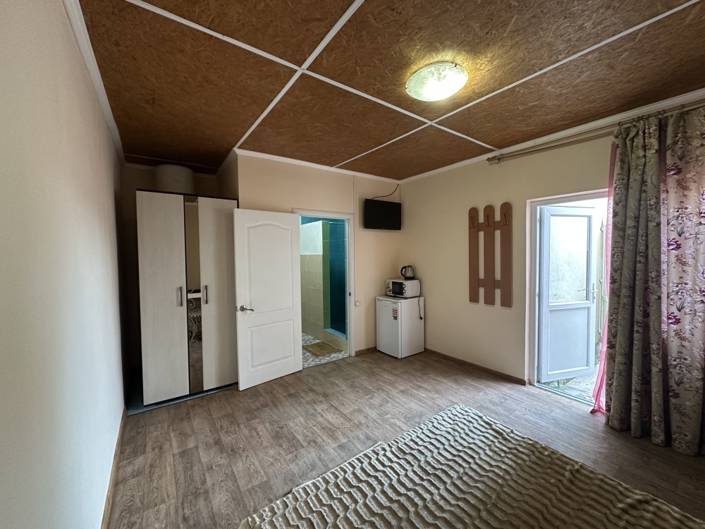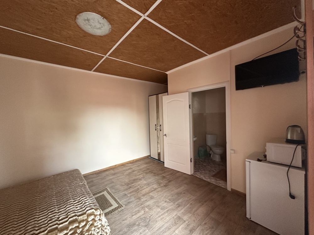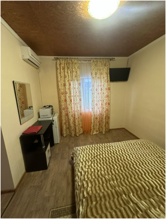 В домике есть две комнаты со всеми удобствами: комфортные спальные места, постельное белье, полотенце, фен, шкаф, большое зеркало, телевизор, кондиционер, сеть Wi-Fi.