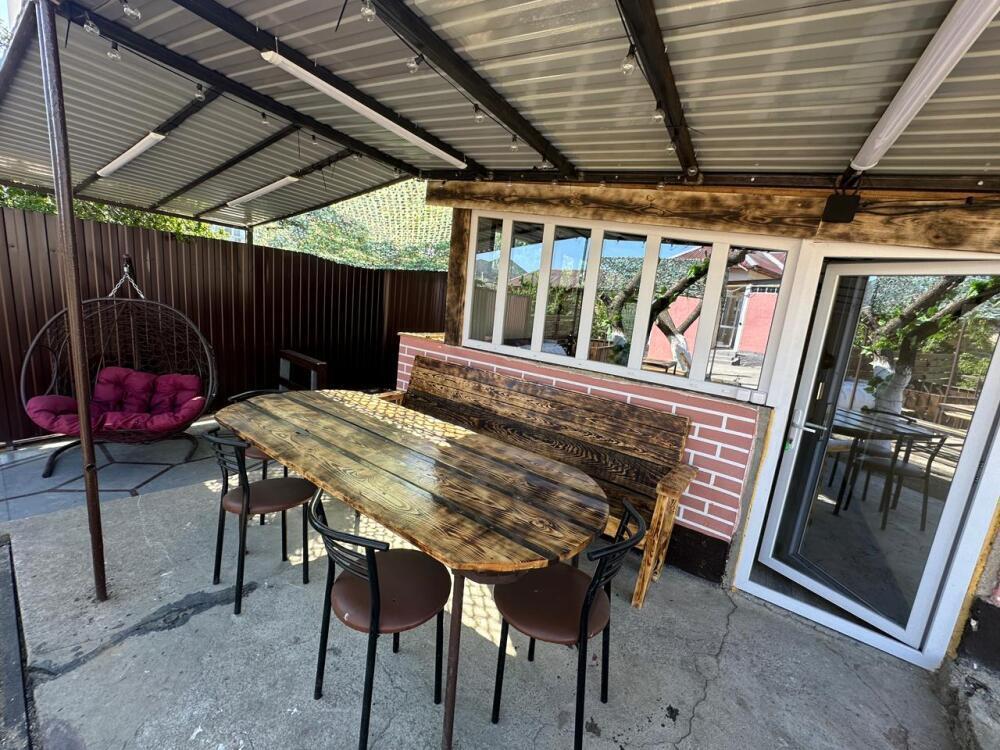 Уютный деревянный дом, в частном секторе, цветущий двор, где можно хорошо отдохнуть и пожарить шашлык. Дом находиться в спальном районе, очень близко расположены магазины, до моря 15-20 минут, рядом аквапарк, центр.