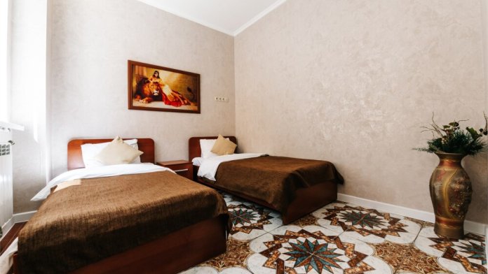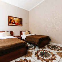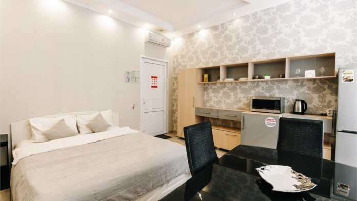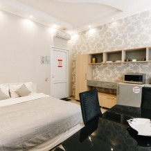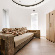 В бизнес номере сделан дизайнерский евроремонт и установлена новая современная мебель. Комфортабельный и мягкий диван/кровать, ванная комната с душевой кабинкой, обеденная зона. ТВ, модульная мебель, холодильник, микроволновка, столовые принадлежностями, включая электрический чайник, а также в данном номере Вы найдете тапочки и зубные принадлежности на каждого гостя.