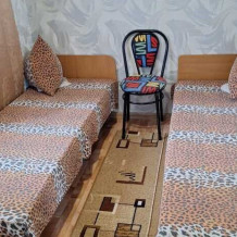 В домике 3 комнаты на 4,2,3 человека. В каждой комнате есть кондиционер. Телевизор есть на кухне и в комнате на двоих. Туалет и душ пристроены отдельно. На кухне есть вся необходимая посуда от стопок до сковородок, микроволновка, электрочайник, газовая плита.