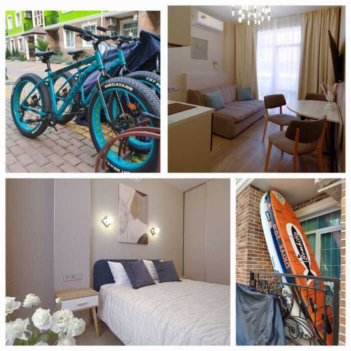 • В вашем распоряжении два современных велосипеда с защитными шлемами, а для водных развлечений – SUP-доска со спасательными жилетами.
