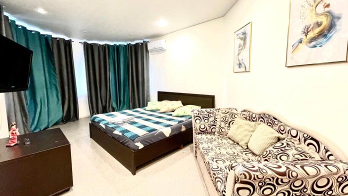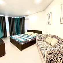 Уютная большая однокомнатная квартира с современным ремонтом в новом доме подойдёт для семьи или для 5-ти человек: у нас 5 спальных мест, из низ 3 раздельных.