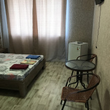 Номер двухкомнатный находится на втором и третьем этажах дома.В номерах есть душ.туалет.кондиционер.холодильник.телевизор.шкаф.тумбочки.стол и стулья.Постель и полотенца предоставляются.