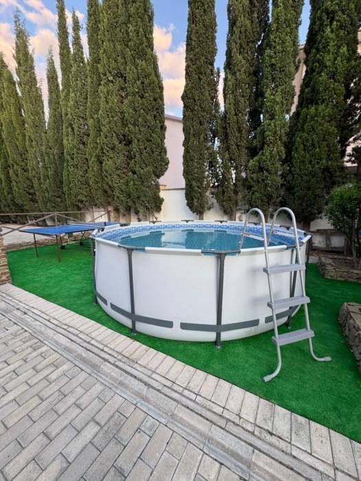 На территории отеля имеется крытая веранда, зона для барбекю, теннисный стол, качели и детская площадка с мини-бассейном. Для удобства родителей предусмотрена кухня, где можно приготовить еду для детей. Территория отеля находится под видеонаблюдением, есть автостоянка и охраняемый двор. В отеле также есть стиральная машина и фен.