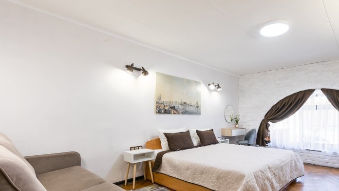 - двуспальная кровать 180*200см + раскладной диван 140*200см;