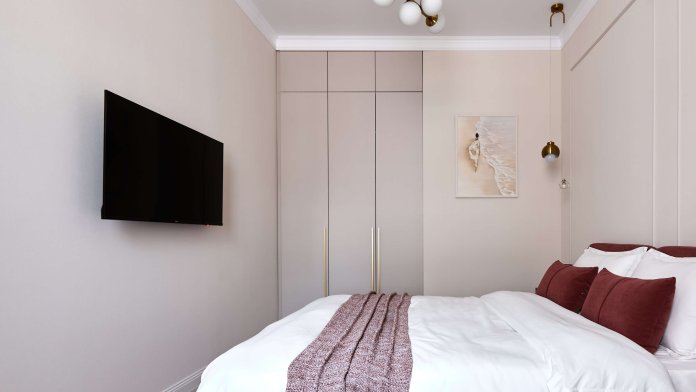 - двуспальная кровати 160*200 см + раскладной диван в гостиной;