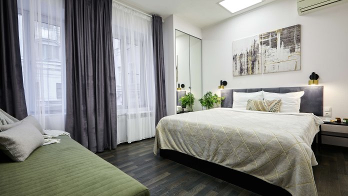 - 2 двуспальные кровати 160*200 и 140*200 + раскладной диван;