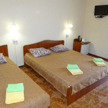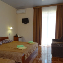 Отдыхали в августе с семьёй в пансионате Арпат, начну с плюсов т.к. их мало: 1. Столовая находится на территории, готовят вкусно,цены адекватные, только нигде нет цен вообще,нужно спрашивать-вам назовут. Минусы:1. В течении 7 дней отдыха в номере "комфорт" за 4500руб.в сутки не было вообще горячей воды! Приходилось греть воду чайником,чтобы помыть детей. Ежедневно спрашивала хозяйку,когда будет горячая вода, каждый день обещали,но ничего так и не сделали. 2. В номере на поверхностях пыль вековая,"мохровая"..3.На территории после 20.00ч батутом и бассейном пользоваться нельзя, что расстроило детей. 4. После 23.00ч режим тишины не соблюдается,за 7 дн.отдыха 2р.удадось спокойно поспать , а так до поздней ночи веселье.,шумоизоляция никакая 5. Постельное и полотенца не меняли ни разу, а для ног вообще дали 1, а остальные должны были принести,но благополучно забыли. Уборка номера через день, протерли посредине и хватит 6. Пришли с пляжа,а у нас открытый номер,в замке связка ключей от всех номеров, на мой вопрос почему номер открыт- сотрудник ответил,что ничего страшного, просто забыли.7. Допол.место был диван, одна из частей сломана и ниже другой на 5-7 см, показала сотруднику,,развели руками,сказали наверное кто-то прыгал-сломали, а как ребёнку спать? Стала просить одеяло,чтобы убрать "яму", неужели, когда стелили постель горничные не видели? 8. Холодильник в номере очень маленький, плохо охлаждает, испортились на утро продукты,максимум расчитан на 1 кг фруктов,бутылку воды. Отель не рекомендую! Не стоит этих денег.