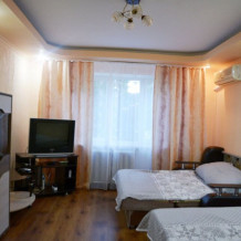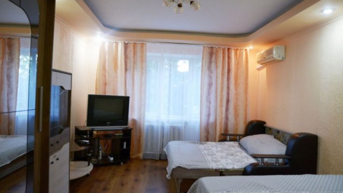 1-комнатнаят малосемейная квартира расположена на 4 этаже 4-этажного дома. Здание без лифта, балкон общий на весь этаж, вид из окна на ул. Лазарева, до моря 5 мин пешком (500 м).