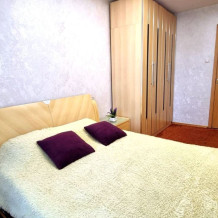 К Вашим услугам квартира со всем необходимым для комфортного проживания: бытовая техника, телевизор, кондиционер, двуспальная кровать, раздвижной двуспальный диван, кровать, шкафы, плита, посуда, необходимая для приготовления и принятия пищи, утюг, гладильная доска, стиральная машина, пылесос, титан, чистое постельное белье и полотенца, фен.
