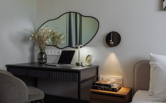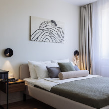 - Двуспальная кровать с ортопедическим матрасом (160×200).