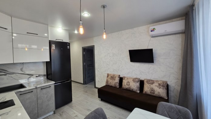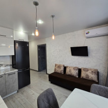 Диван, телевизор, Wi-Fi, полностью оборудованная кухня: плита, чайник, холодильник, вся необходимая посуда и принадлежности. Стиральная машина, утюг, фен. Чистое постельное бельё.