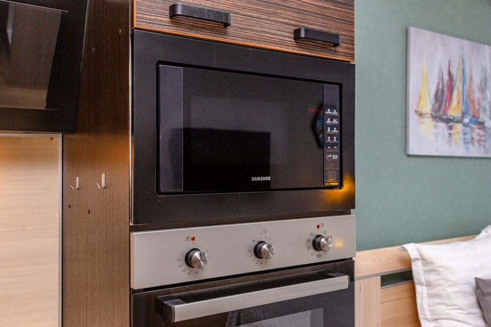 - кухня оборудована всем необходимым: посудомойка, холодильник, тостер, стеклокерамическая плита, духовой шкаф, встроенная микроволновая печь, чайник, посуда, кастрюли и сковородки, сахар, соль, чай, кофе, питьевая вода, конфеты в качестве комплимента.