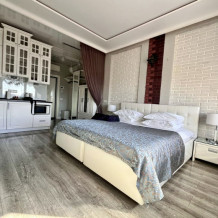 В распоряжении гостей полностью оборудованная кухня, ванная комната, туалетные принадлежности, телевидение, интернет, вся техника и мебель необходимая для комфортного проживания. Комфортная «чил-зона», на которой можно как посидеть с ноутбуком, так и полюбоваться закатом, ночным городом.