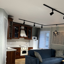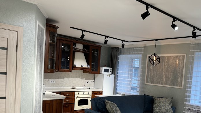 Бытовая техника: водонагреватель, кондиционер, холодильник, микроволновка, одноконфорочная плита , духовой шкаф, робот -пылесос, стиральная машина, 2 телевизора, вай-фай, чайник, вытяжка, утюг
