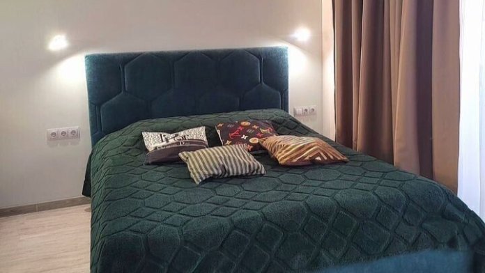 Техника: кондиционер, холодильник, плита, микроволновка, стиральная машина, водонагреватель, телевизор, фен, утюг, Wi-Fi, телевидение.