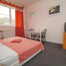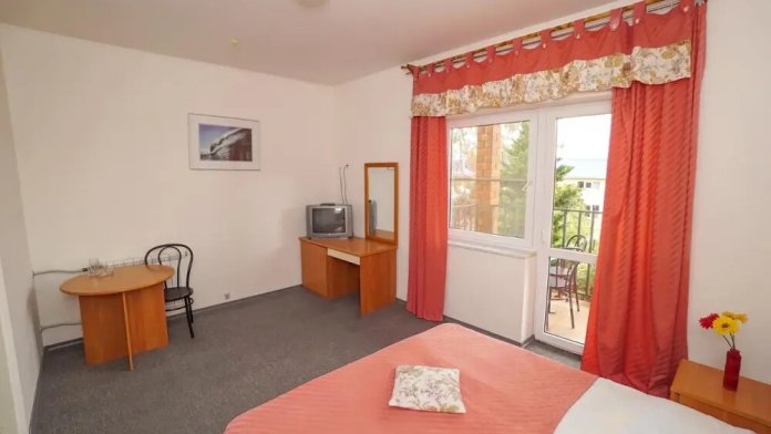 Для проживания отдыхающих предлагаются однокомнатные, двухкомнатные двухместные и «Люкс» номера c санузлом, душевой кабиной и феном. Номера оснащены телевизором, кондиционером и холодильником.