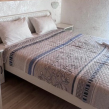 Второй этаж: двуспальная кровать, телевизор, дополнительная кровать. Постельное белье, полотенца, посуда, чайник электрический, холодильник, микроволновка, доска гладильная, утюг, сушилка для белья.