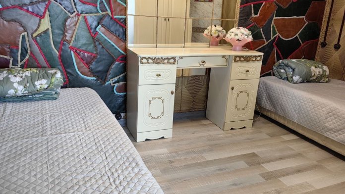 До моря 4 минуты по прямой, большая береговая линия, места всем хватить.