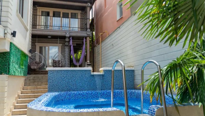 На территории гостиницы Вас ждет лазурный бассейн и расслабляющее джакузи, а также мангальная зона, где можно насладиться ароматом свежеприготовленного мяса, и зона отдыха, располагающая к безмятежному времяпрепровождению. Для любителей банных процедур за дополнительную плату доступна русская баня.