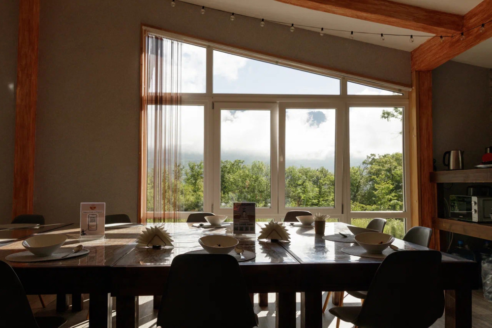 - Размещение в просторном домике с видом на горы