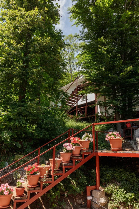 Общая площадь 40 м. В домике 2 комнаты. Просторная терраса с выходом в дубовый лес или балкон с видом на горы или лес.