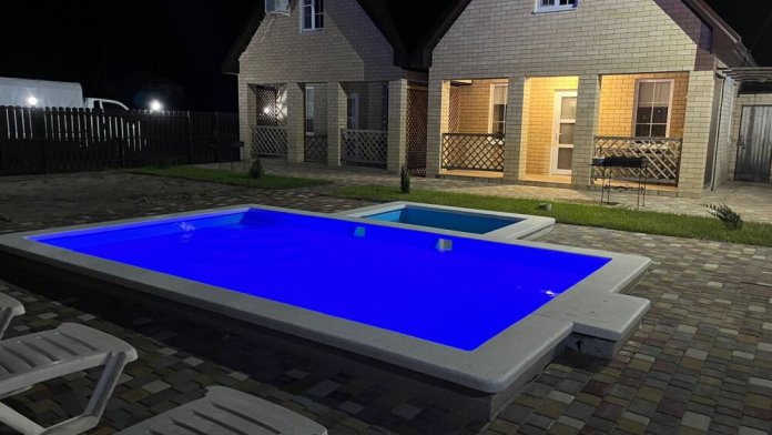 Во дворе, к услугам гостей, мангал, детская площадка, бассейн с детской зоной. Перед двором бесплатная парковка.