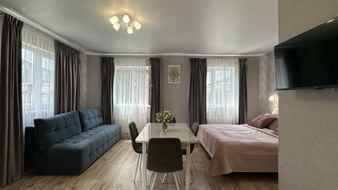 Расположение апартаментов просто идеальное – всего лишь 1.4 км до пляжа, также прекрасная инфраструктура для лайт-активации вашего отдыха. Идеальный выбор для тех, кто ищет уединения и наслаждения природой без суеты большого города.