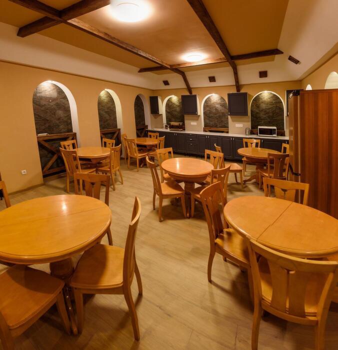 Для удобства гостей в гостевом доме есть общая кухня, где можно приготовить еду или просто насладиться чашечкой кофе. На кухне есть все необходимое для приготовления пищи.