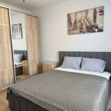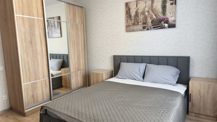 В квартире есть всё для комфортного проживания гостей: оборудованная кухня, диван, большой шкаф для вещей, рабочий / учебный стол, прихожая, сушильная и гладильная доска с утюгом