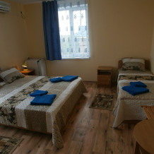 В номере имеется : 2 кровати-трансформеры, кресло-кровать, горячая и холодная вода постоянно; индивидуальный сейф; фен по требованию; необходимая посуда; набор полотенец; гигиенически принадлежности.