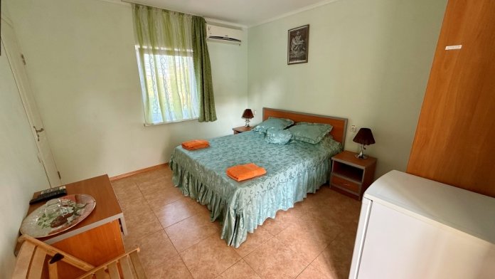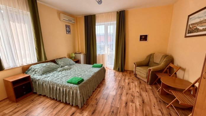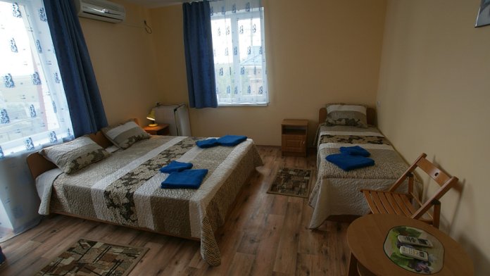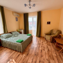 Отель состоит из двух корпусов, 3-х этажное здание состоит из 15 комфортабельных номеров со всеми удобствами 2-х, 3-х и 4-х местного размещения. 2-х этажное здание состоит из 10 комфортабельных номеров со всеми удобствами 2-х местного размещения. В каждом номере: кондиционер, плазменный телевизор, цифровое телевидение, санузел с душевой кабиной, холодильник, сейф.
