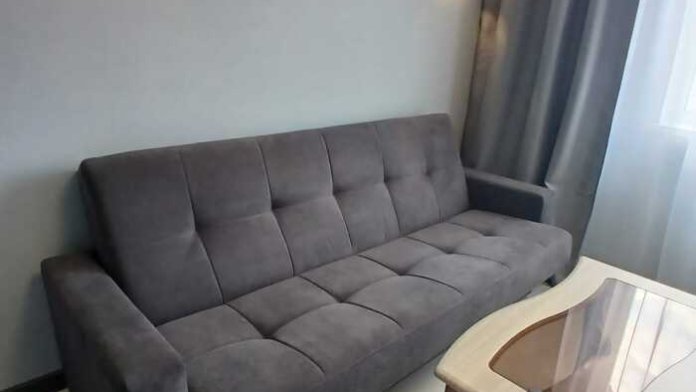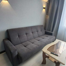 Диван, телевизор, Wi-Fi, полностью оборудованная кухня: плита, чайник, холодильник, вся необходимая посуда и принадлежности. Чистое постельное бельё. В ванной есть фен, стиральная машинка, душевая кабина, полотенца, окно.