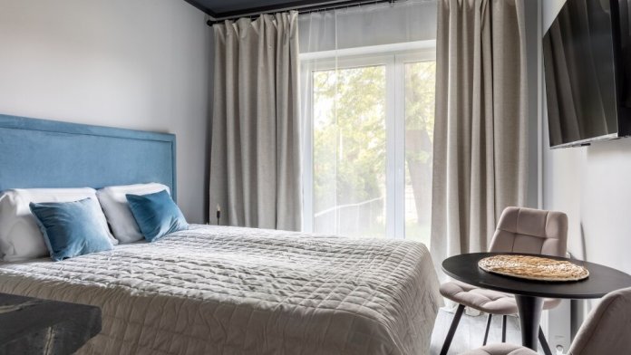 В студии комфортно разместятся два человека (двуспальная кровать).