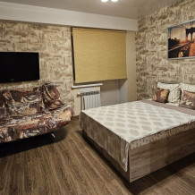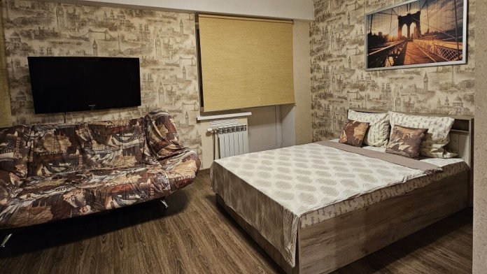 Сдается уютная студия с двуспальной кроватью и небольшим диванчиком.