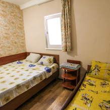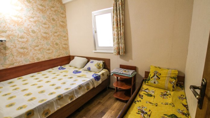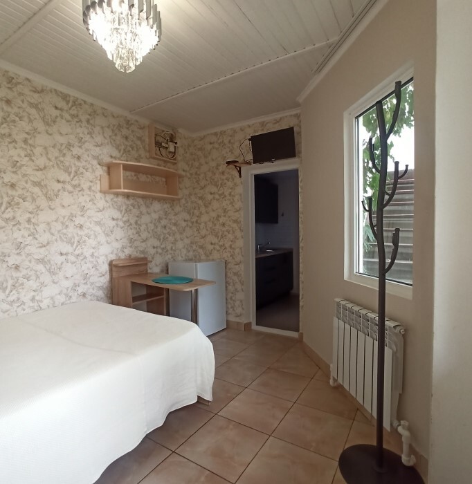 Уютный двухместный номер для комфортного отдыха. Все самое необходимое есть в номере. Две односпальные кровати с ортопедическими матрасами. Кондиционер, телевизор, холодильник, фен. Чайник и чайная посуда. Общая кухня на территории.