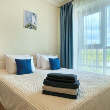 - современная мебель: две двуспальные кровати с ортопедическими матрасами, одна кровать 180х200, два дивана 160х200; по запросу предоставляем раскладушку;