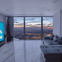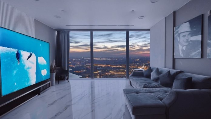 Колоссальный телеэкран (почти 100 дюймов, один из самых больших на рынке), частный кинотеатр на уровне неба.
