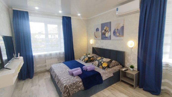 В нашей уютной квартире Вы не найдете ничего лишнего,: двуспальная кровать размера king-size, удобный двустворчатый шкаф для хранения гардероба. Функциональная кухня со всей необходимой бытовой техникой упростит приготовление лёгких перекусив и вкусных обедов. Квартира полностью соответствует фотографиям.
