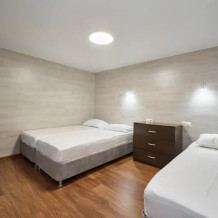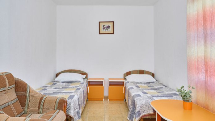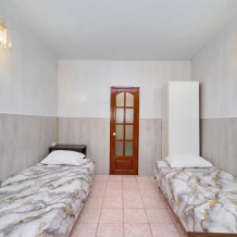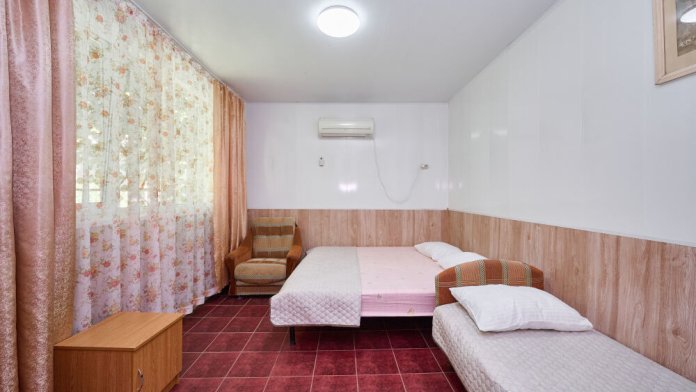 Номер с двумя спальнями и просторной солнечной лоджией с собственной кухней и санузлом. Рассчитан на семью (компанию) из 3-6 человек. Окна спален выходят на север (тихий внутренний двор). В этой небольшой двухкомнатной квартирке есть все необходимое для комфортного отдыха.