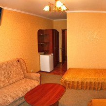 Просторный двухкомнатный номер категории «стандарт» предназначен для любителей идеально комфортного отдыха. В номере есть два балкона, гидромассажная душевая кабина, в каждой комнате - телевизор и кондиционер. В номере может разместиться от 2 до 6 человек, что прекрасно подходит для отпуска всей семьей.