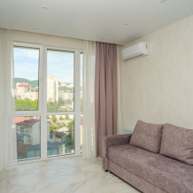 Удобства: бесплатный Wi-Fi, телевизор с бесплатными кинотеатрами и телевидением, кондиционер, тёплый пол, стиральная машина, утюг, фен.